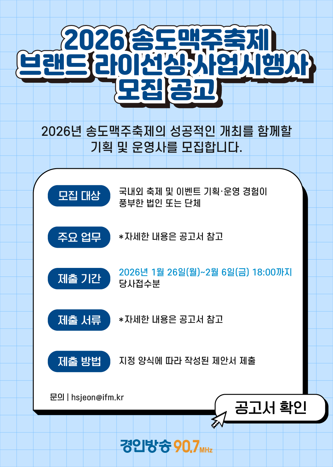 <뉴스제보= 경인방송 FM 90.7(☎031-225-9070/032-830-0302)>